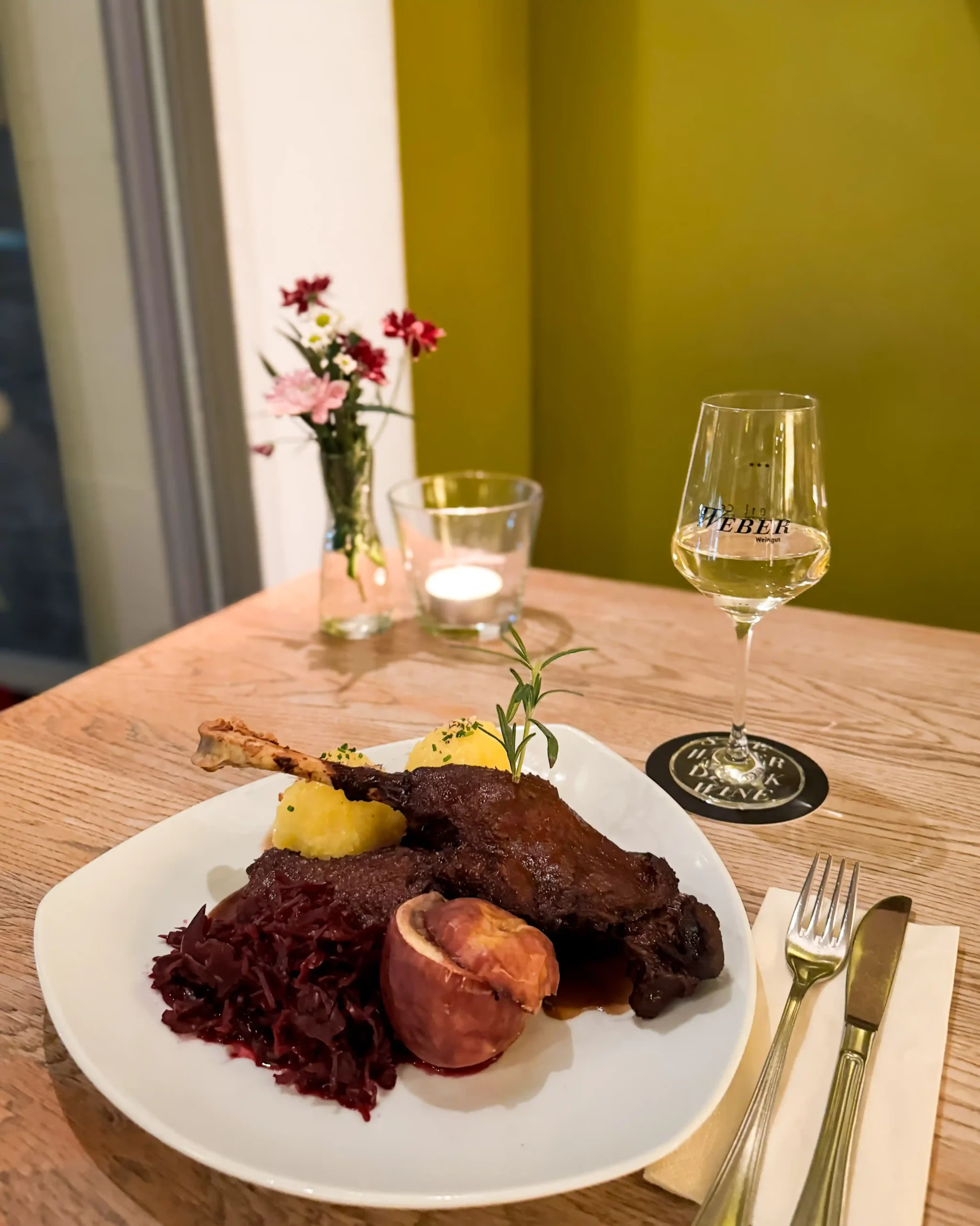 Die Weine stammen ausschließlich vom preisgekrönten Weingut Weber in Ettenheim. Das Ambiente ist schlicht und schick, ideal für ein gemütliches Abendessen oder einen Drink an der Bar